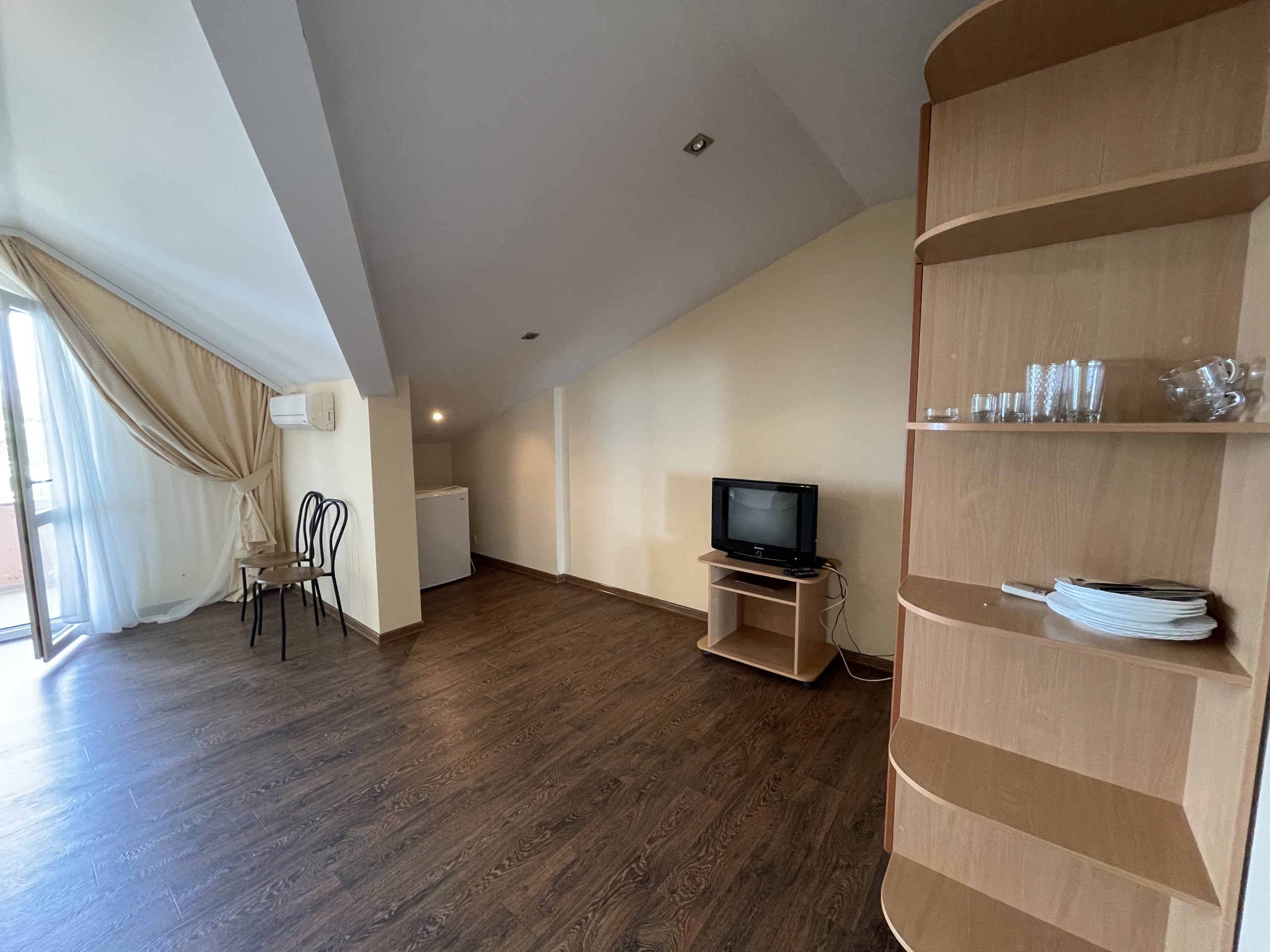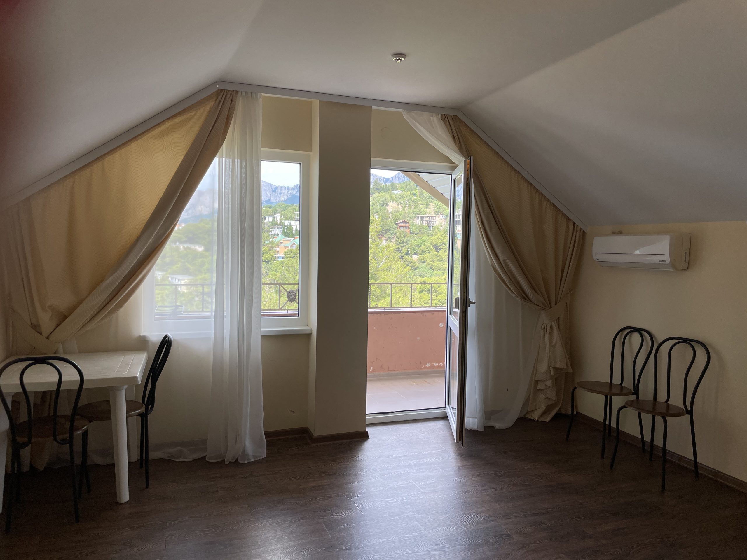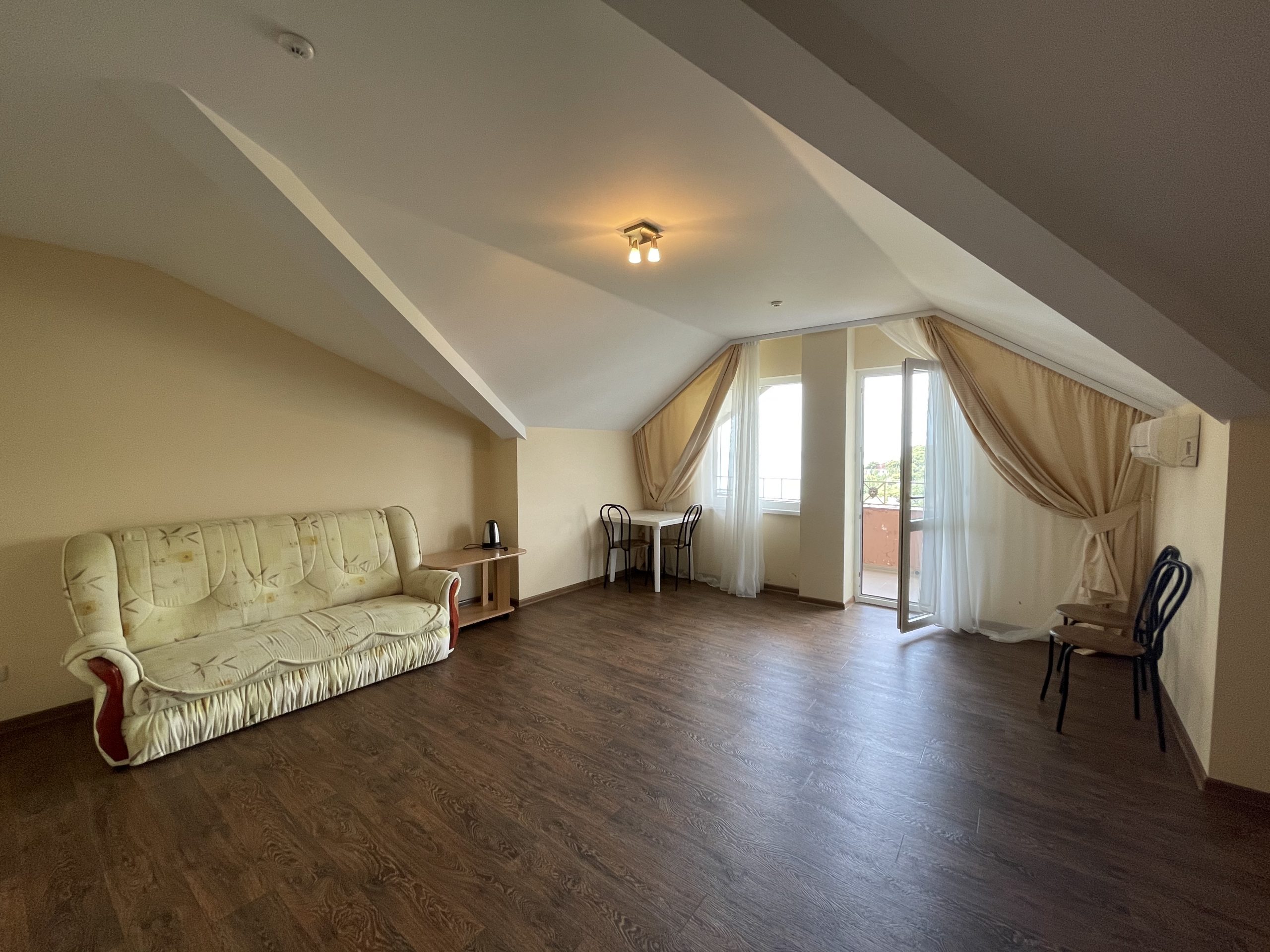 Видовой 2-комнатный номер с санузлом, гостиной, большим балконом с лучшим видом на море.